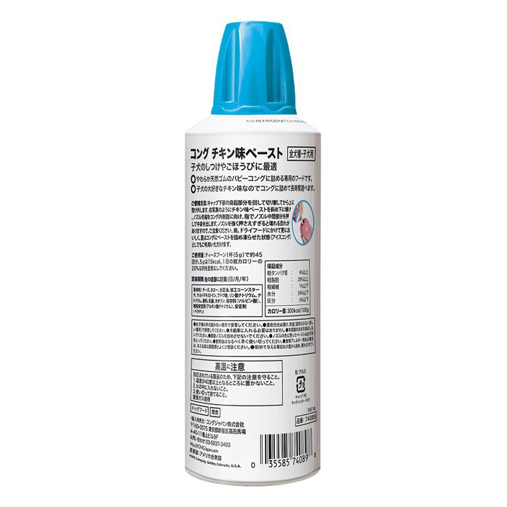 天然ゴム製の犬用知育玩具「コング」専用ペースト。全犬種・子犬にご使用いただけます。 エアゾールタイプなので使いやすく、コングに詰めてしつけやごほうびにご使用いただけます。