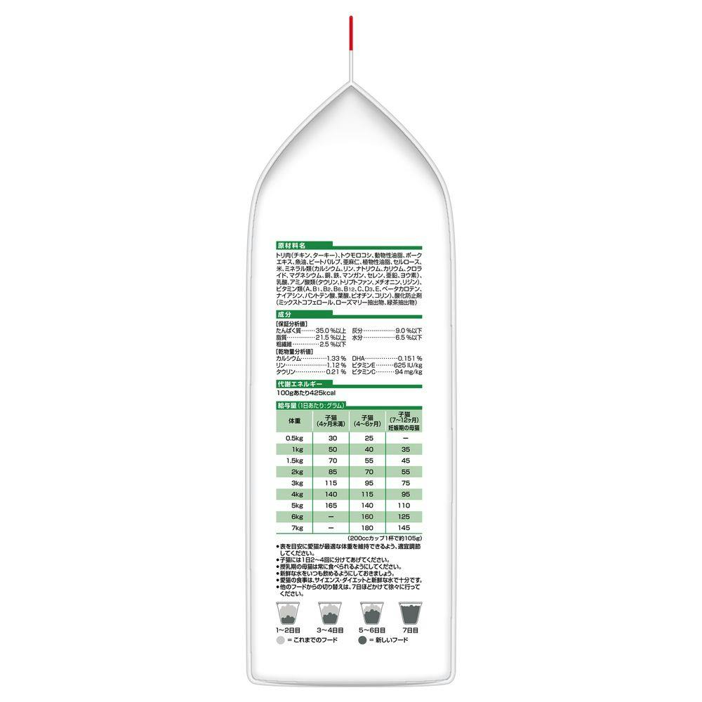 高品質な魚油由来のDHAを含み健康的な脳と目の発育、消化に良い高品質なたんぱく質を使用し引き締まった筋肉の発育、適切なミネラルバランスでしっかりとした骨と歯の発育、子猫の成長に欠かせないタウリンを十分に含み心臓と目の健康をサポートします。