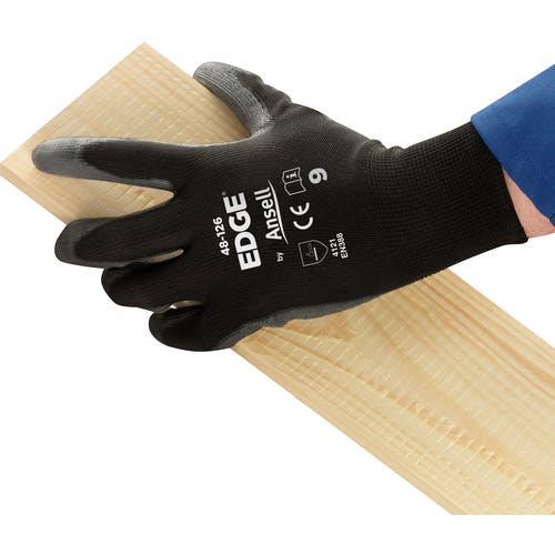 【CAINZ-DASH】アンセル・ヘルスケア・ジャパン ウレタン背抜手袋 エッジ 48-126 ブラック Sサイズ 48-126-7【別送品】