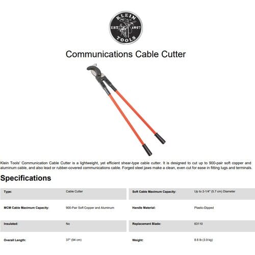 【CAINZ-DASH】KLEIN TOOLS社 通信ケーブルカッター 950mm 63047【別送品】