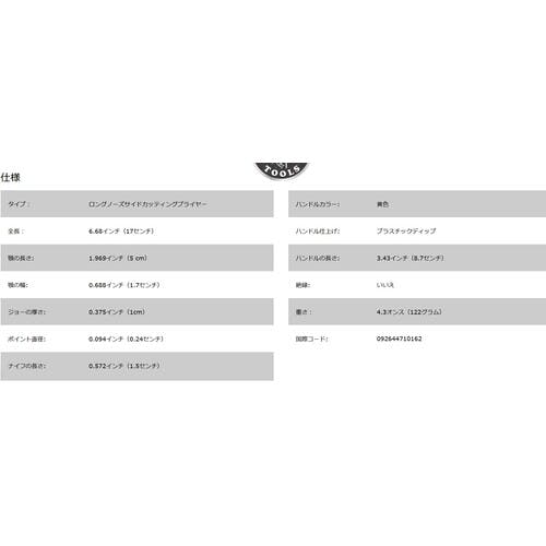 【CAINZ-DASH】KLEIN TOOLS社 ロングノーズプライヤー サイドカット 170mm D203-6【別送品】