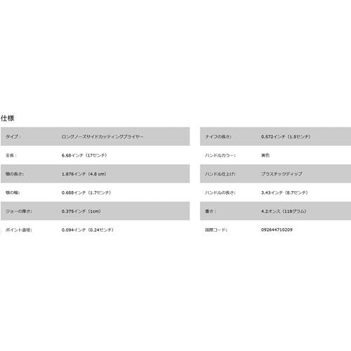 【CAINZ-DASH】KLEIN TOOLS社 ロングノーズプライヤー サイドカット 170mm 皮むき穴付 D203-6H2【別送品】