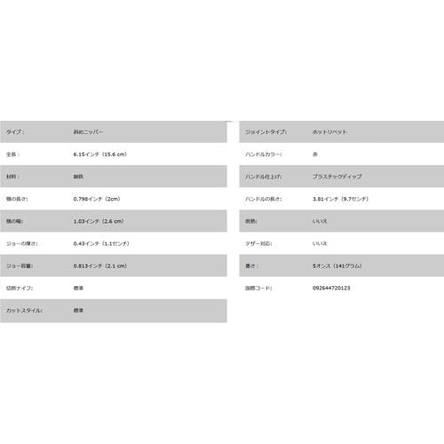 【CAINZ-DASH】KLEIN TOOLS社 ニッパ 150mm ばね付き D202-6C【別送品】