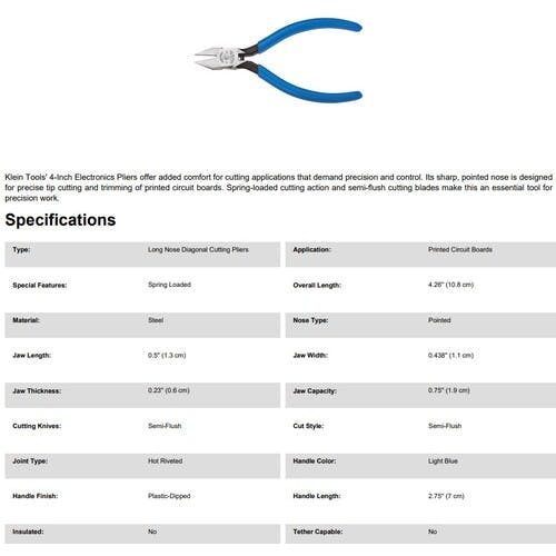 【CAINZ-DASH】KLEIN TOOLS社 電工ニッパ 100mm D209-4C【別送品】