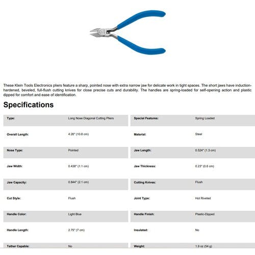 【CAINZ-DASH】KLEIN TOOLS社 電工ニッパ 100mm 細刃 D259-4C【別送品】