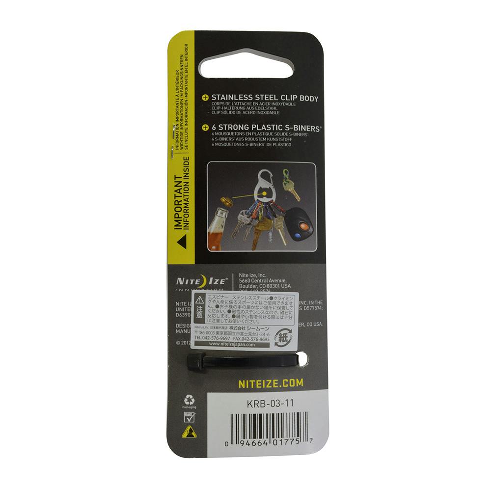 6つのS ビナが付属され、それぞれにキーの取付けが可能。カラーを見る事でキーを見分ける事が出来る。また、ベルト通しやバックにも取付けできる。