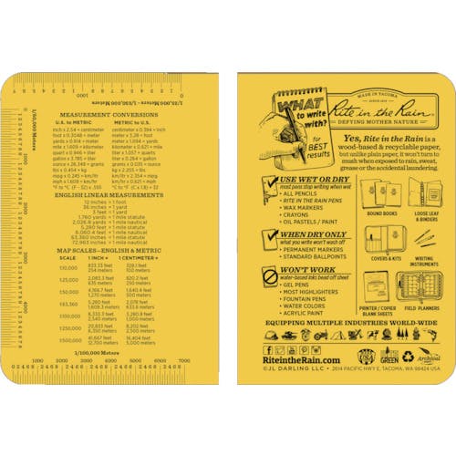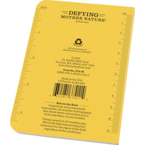 【CAINZ-DASH】Rite in the Rain社 3 1/2X5 ソフトカバーブック 横開きタイプ イエロー 374-M【別送品】