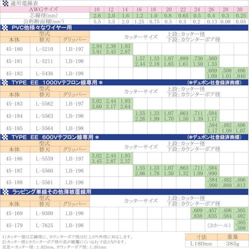 TYPE EE 1000Vテフロン電線用