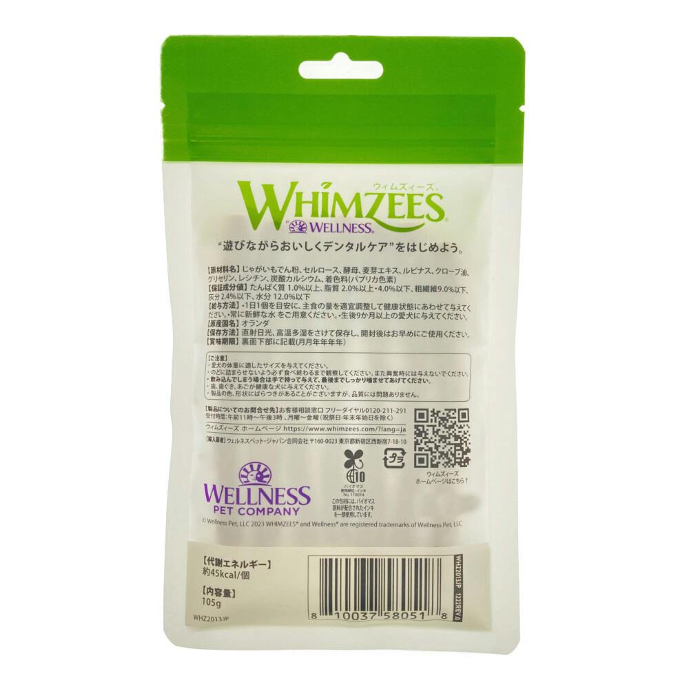 ウィムズィーズは植物由来の厳選素材を使用したデンタルトリーツです。独特の形状と噛み応えのある硬さで、ワンちゃんが楽しく長く噛むことをサポートします。長く噛むことにより、歯垢や歯石の減少、口臭予防にも役立つだけでなく、ストレスケアにもなります。