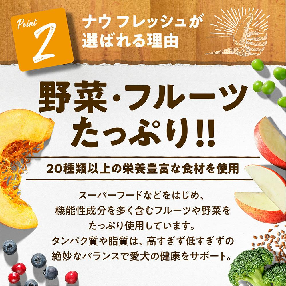 新鮮素材をたっぷり使ったナウフレッシュの基本レシピとなるドッグフード。グレインフリー、ミールフリーで安心の美味しさ。