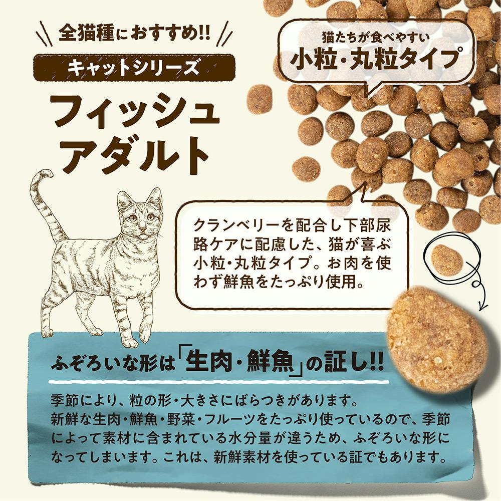お肉を使わず鮮魚をたっぷり使ったキャットフード。グレインフリー、ミールフリーで安心の美味しさ。