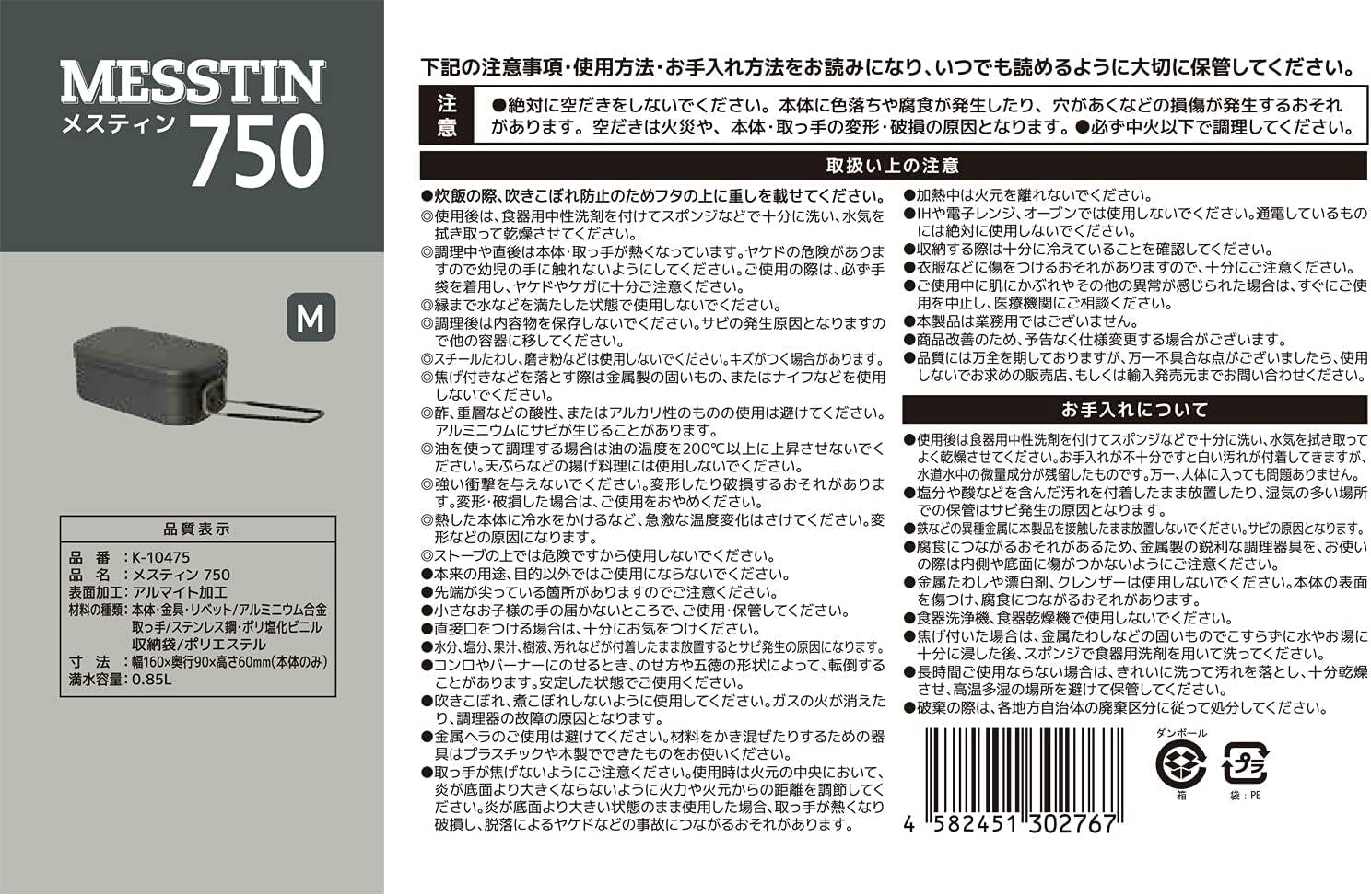 パークレーン キャンプ用品 BBQ用品 ソロキャンプ メスティン750 幅9×奥9×高6cm ブラック 4582451302767【別送品】