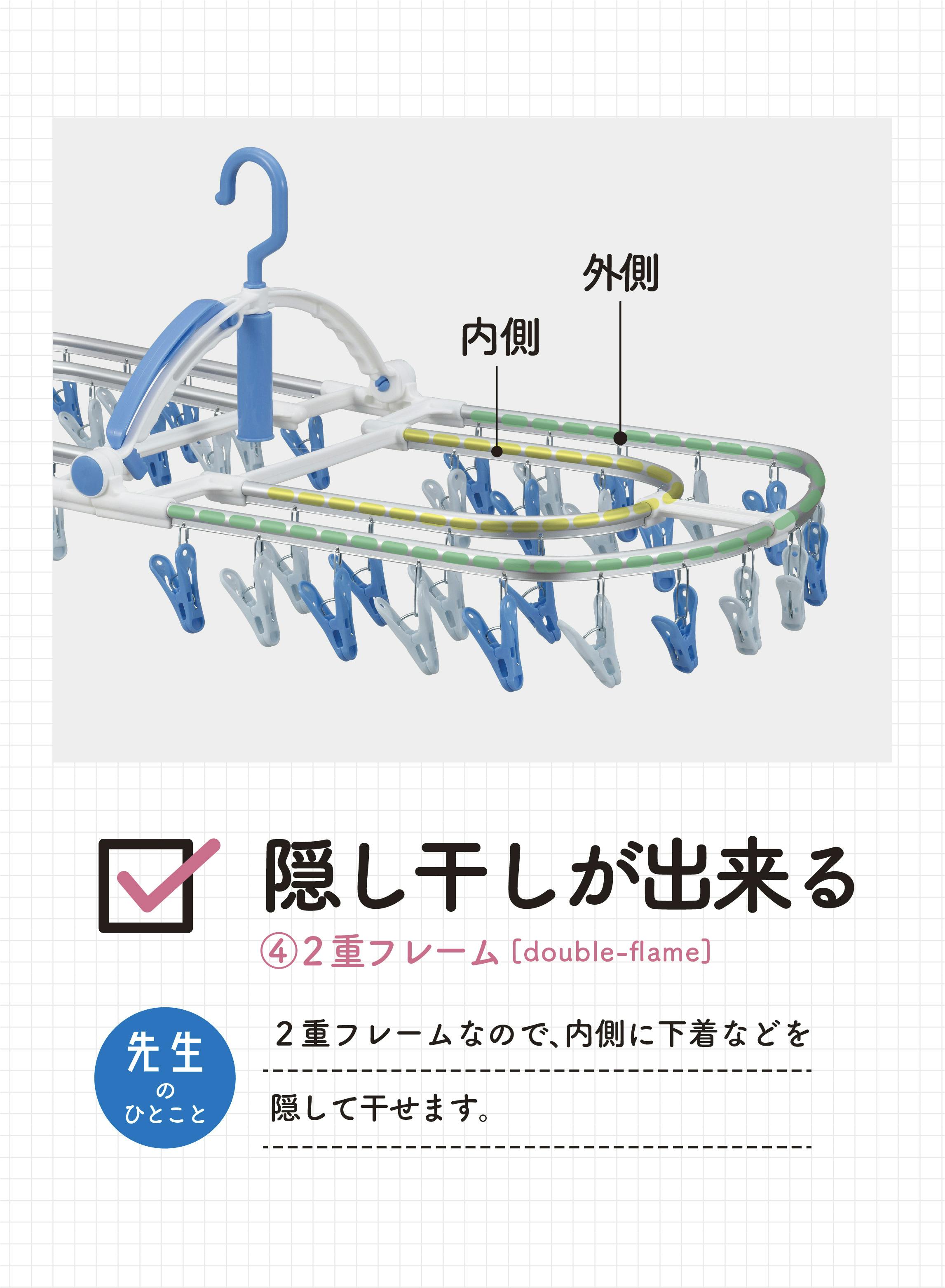 ・2重フレームになっているので、内側に下着を干せば隠すことも出来る