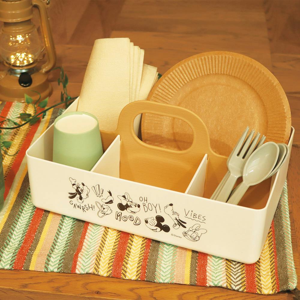 お家の中を片手で「持って」運べる収納ケース。ケース真ん中のハンドルで、片手でサッと持ち運びができて便利。本体の仕切りは全て取り外し可能。ケース内を収納するものに合わせて自由にカスタムできます。ティーバッグやお菓子を入れてカフェセットに、化粧水やコスメを入れてメイクボックスなど使い方いろいろ。