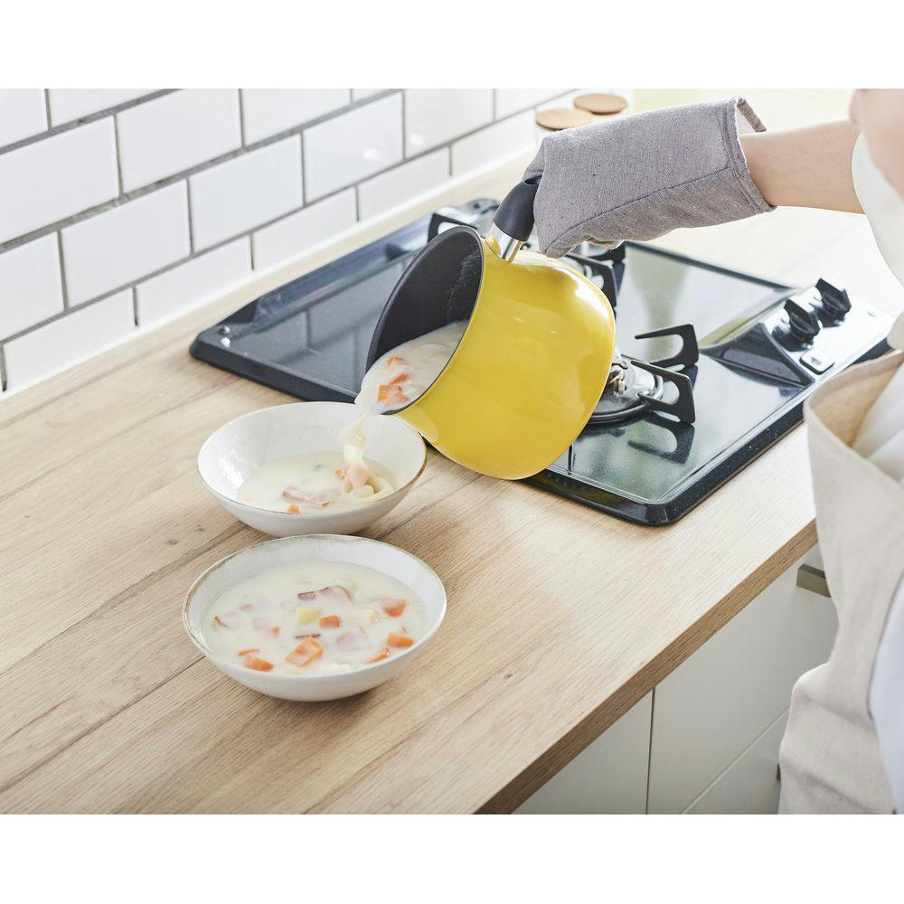 ・湯切れの良い注ぎ口付き。ケトルとしても使えます。・炊飯鍋としても使えます。作り方は簡単。沸騰後、弱火にし10数分、その後蒸らして完成。手軽にチャレンジできます。ガラス蓋付で調理中の様子が見えます。・おしりがぷくっとしたカタチは、内側へ対流しやすく、麺を茹でるのにも適します。