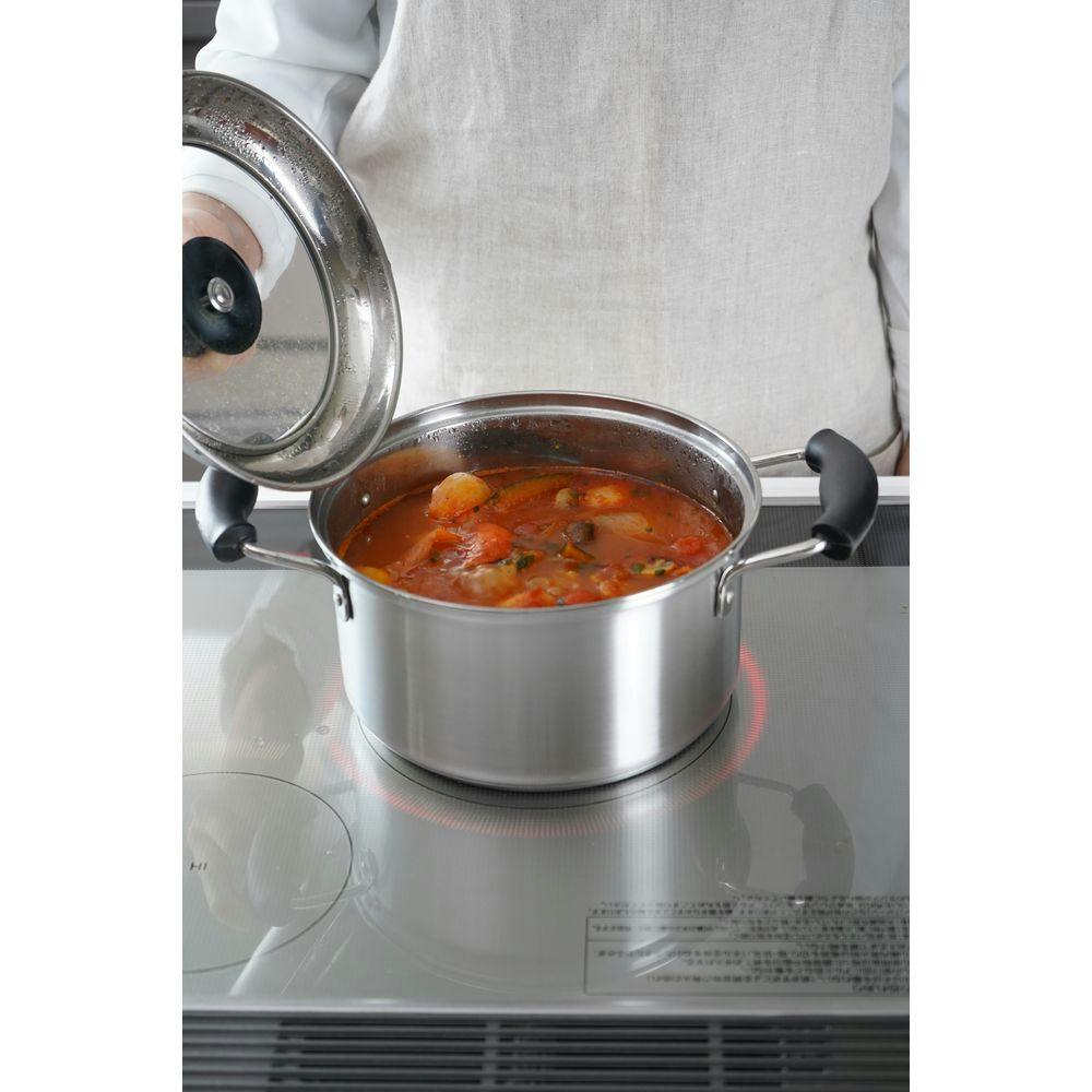 ・底面は熱ムラが少なく熱変形に強いアルミ圧着三層底構造。熱を均一に伝えるから、美味しく調理できます。・ガラス窓付の蓋は調理の様子が見えて便利です。・IH&ガス対応です。