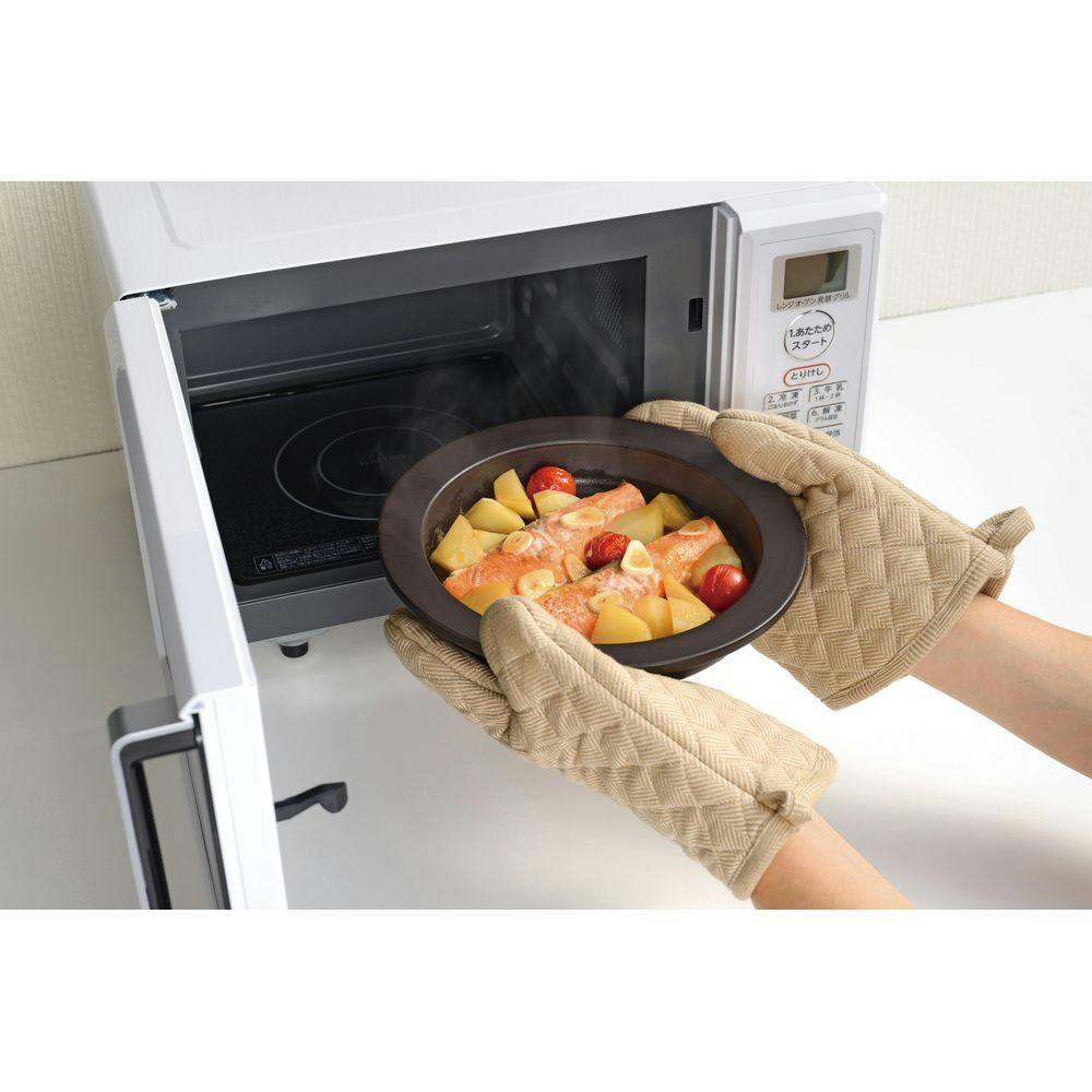・電子レンジのマイクロ波と陶器の発熱効果で時短調理が可能。・面倒な火加減の調整もナシで焼きムラになりにくく、おいしい仕上りに。レシピ付
