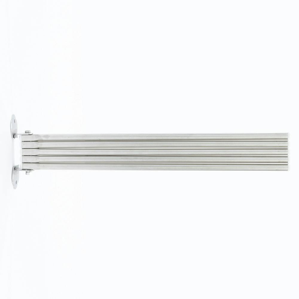 錆に強いステンレスパイプのふきん掛け。木ねじでしっかり取付します。タオルやキッチンクロスを最大5枚掛けられます。使わないときには、ハンガーをまとめてコンパクトに収納できます。
