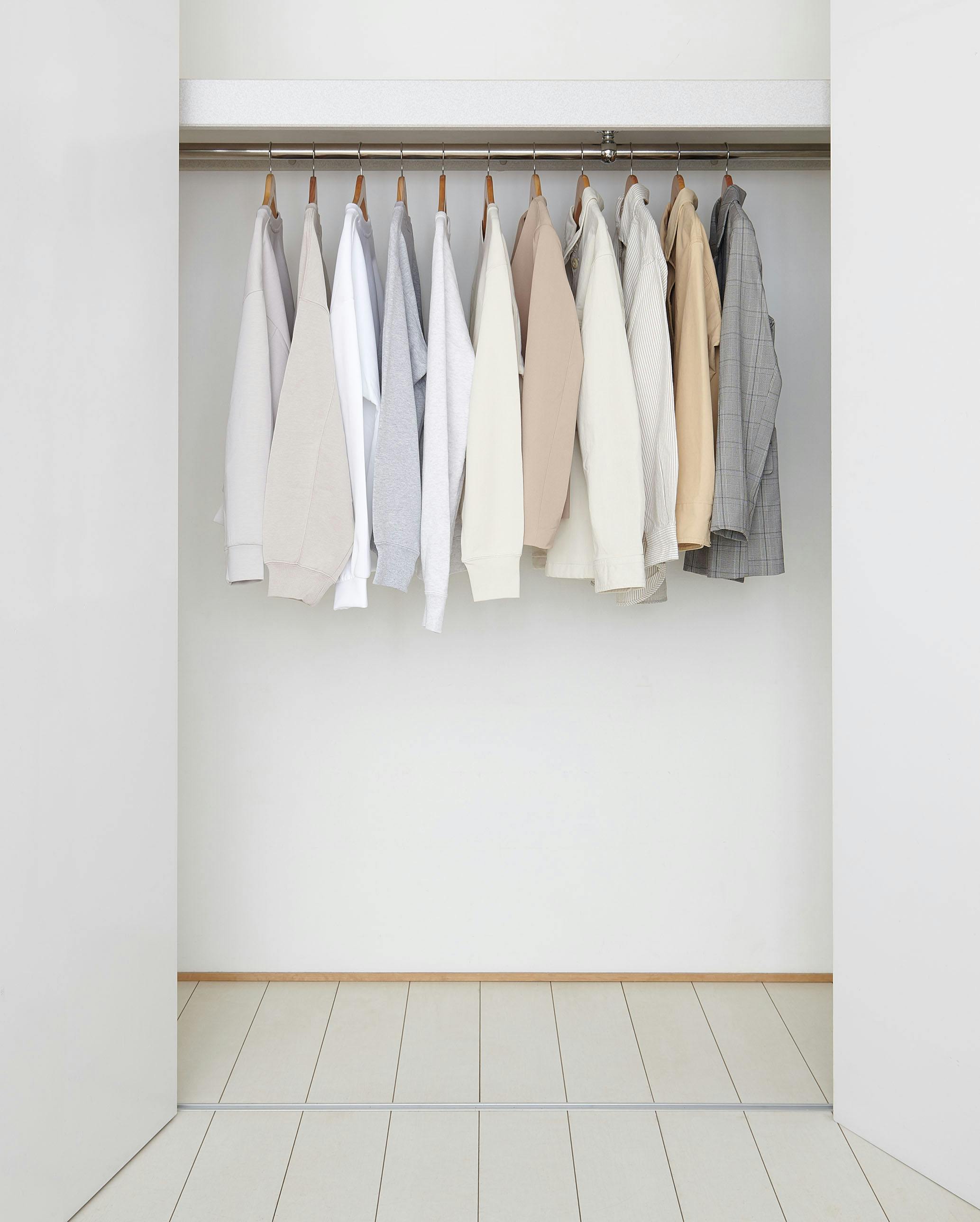 吊るすだけの簡単設置。幅が45~70cmに伸縮するので、収納場所に合わせて設置可能
