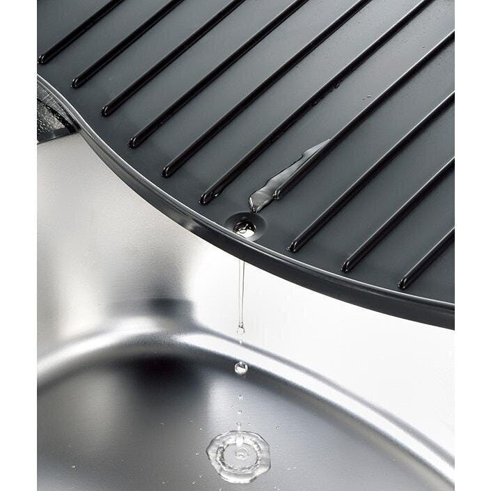 リブがあるので食器の設置面が少なく清潔に使用できます。 シンクにそのまま排水できます。(止水栓付き)