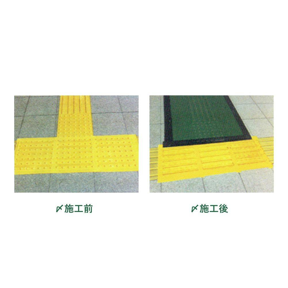 ●簡単設置で誘導導線が変更でき、撤去もラクラクです。\n既設点字ブロックの凹凸解消を導線の変更が同時に可能です。●簡単に施工ができて、視覚障害者の安全が図れます。