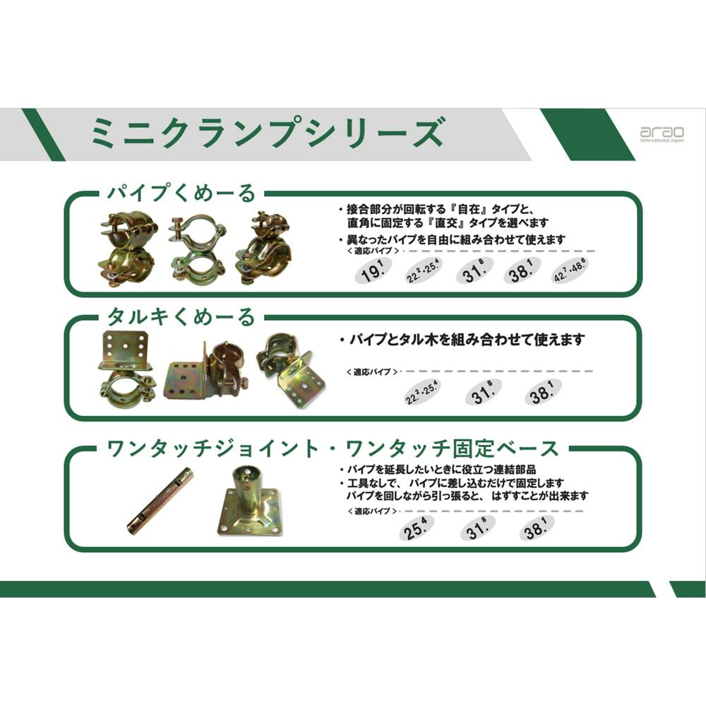 ●22.2φ~25.4φ用直交タルキ止めクランプ●パイプとタル木を組み合わせて使えます。●ドライバー1本で簡単に組立てできます。