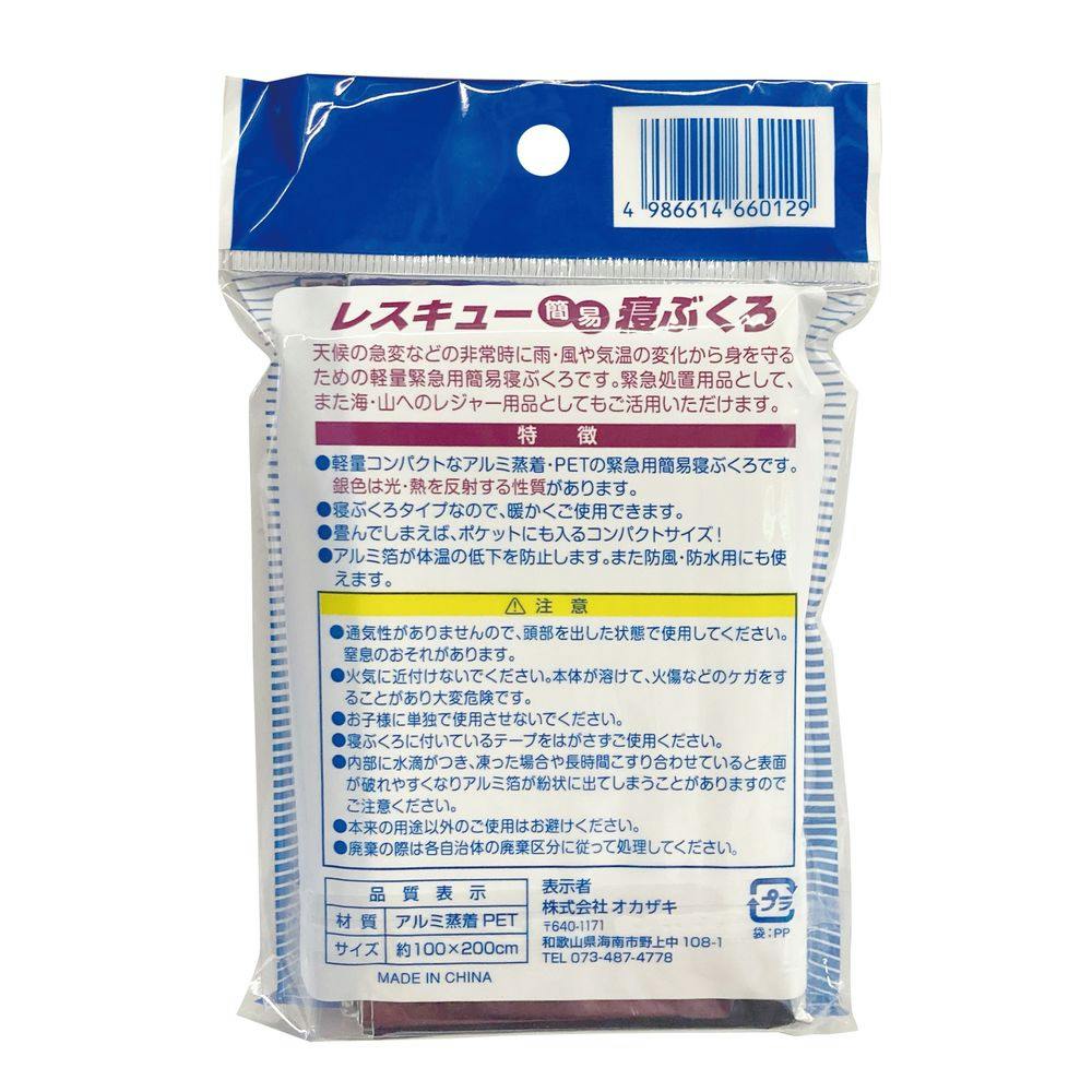 軽量コンパクトなアルミ蒸着PETの緊急用簡易寝袋です。