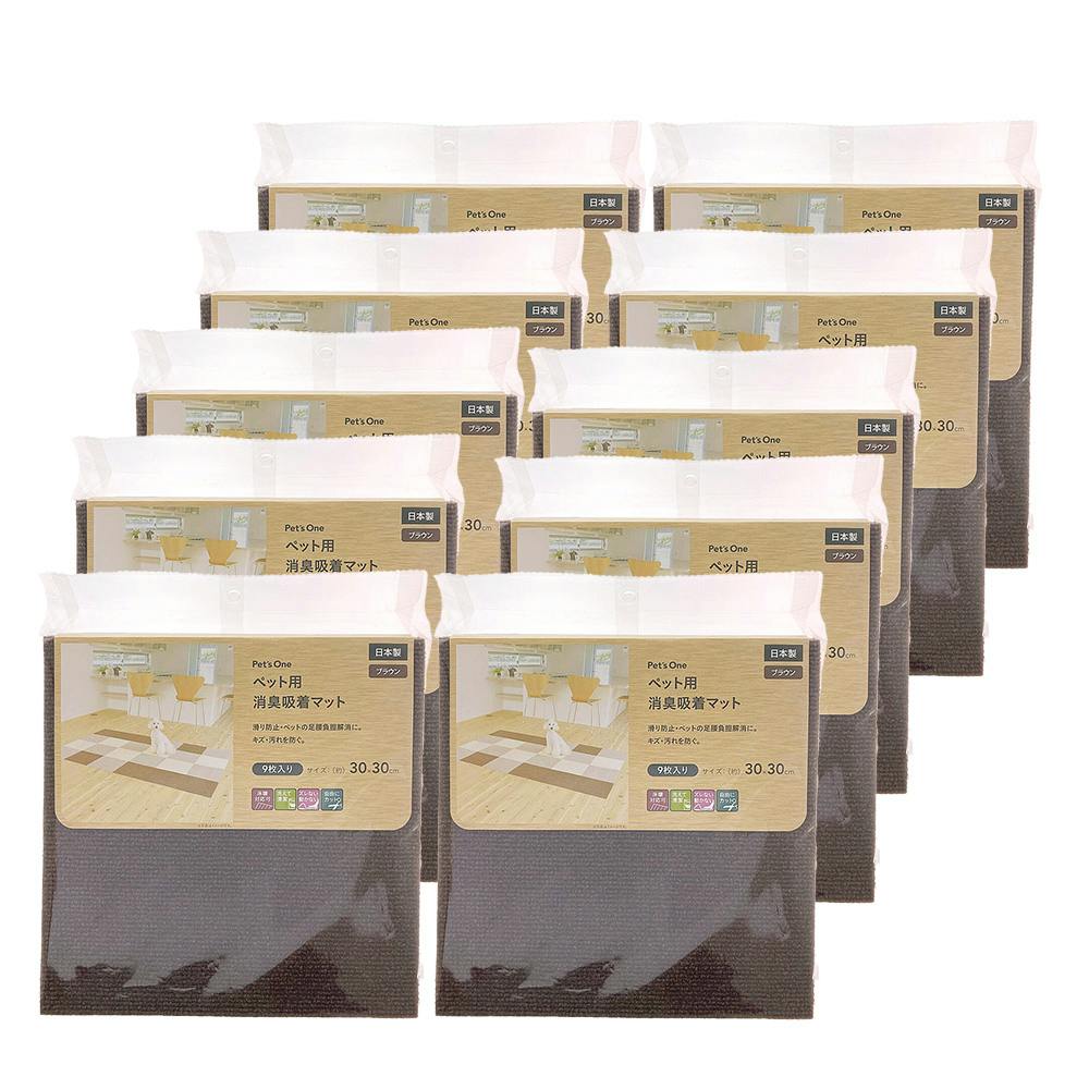 【まとめ売り】ペット用消臭吸着マット 30×30cm 9枚入×10パック ブラウン