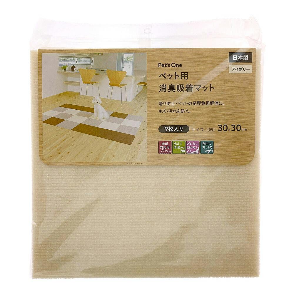 【まとめ売り】ペット用消臭吸着マット 30×30cm 9枚入×10パック アイボリー