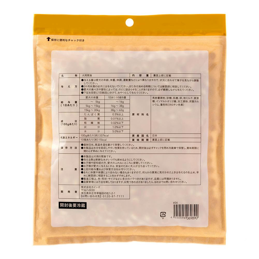 ●本製品は愛犬用です。主食として与えないでください。●愛犬の食べ方や習性によっては、のどに詰まらせることがありますので、必ず観察しながらお与えください。