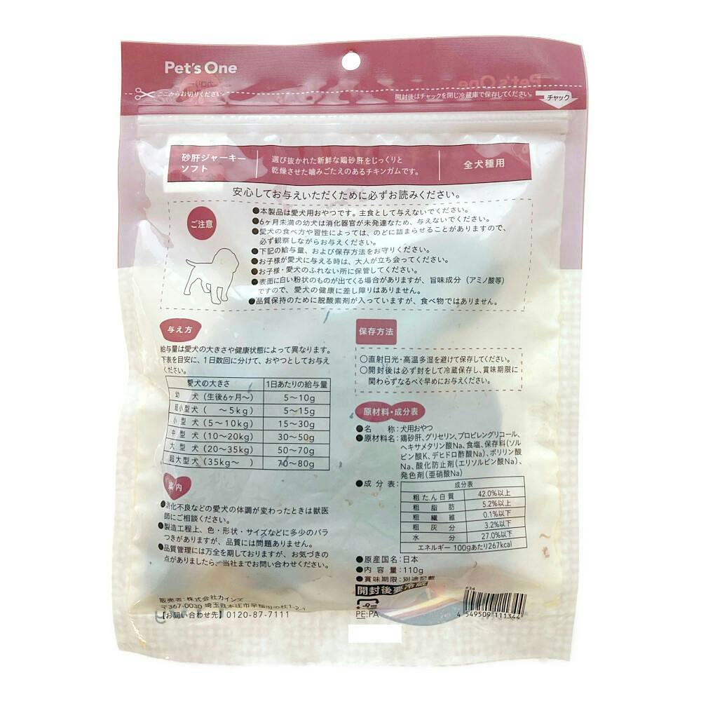 【まとめ売り】Pet’sOne ペット用おやつ 砂肝ジャーキー ソフト 全犬種用 110g×20個入
