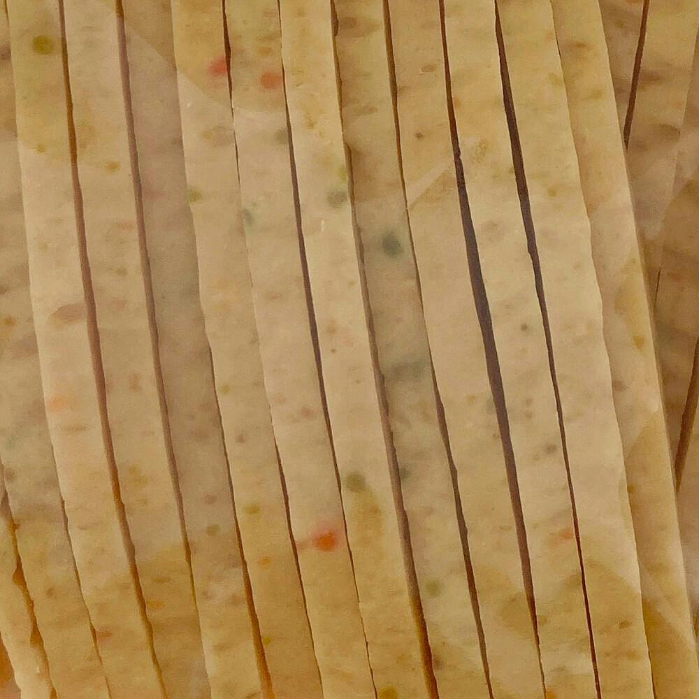 肉類(鶏肉、鶏ササミ)、小麦粉、にんじん、ほうれん草、ソルビトール、グリセリン、コーンスターチ、ホエイパウダー、保存料(ソルビン酸K)、リン酸塩、香料、着色料(酸化チタン、β-カロテン、赤106号、青1号)、乳酸菌