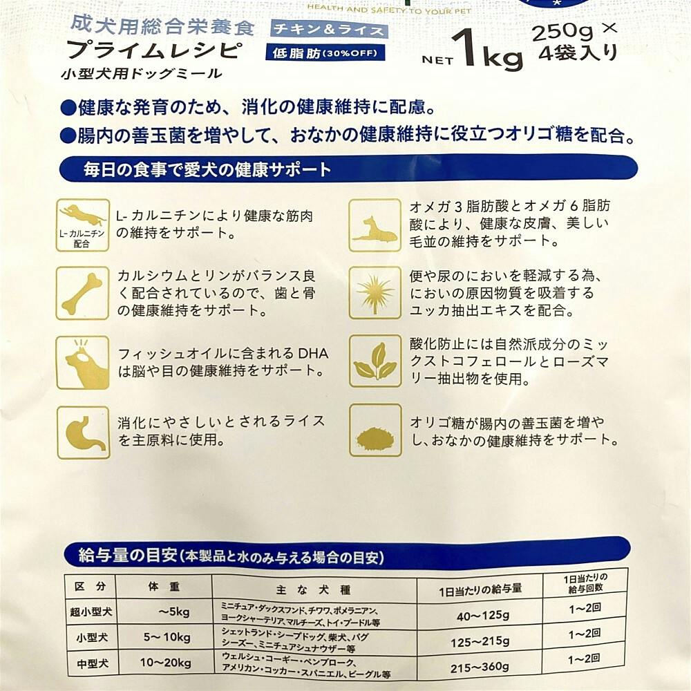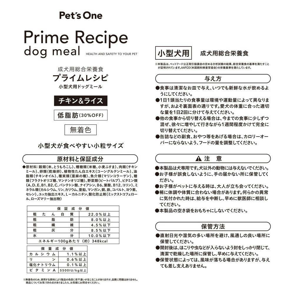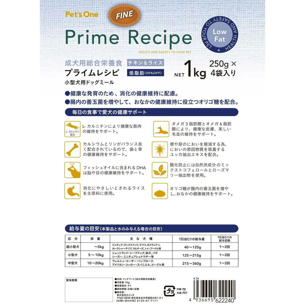 【まとめ売り】プライムレシピ 小型犬用 低脂肪 チキン&ライス 1kg×6個入