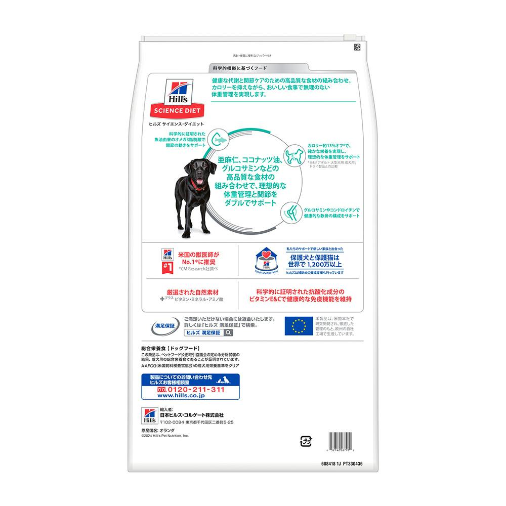 ヒルズ独自の低カロリーレシピ*で健康的な減量と体重管理をサポート さらに健やかな関節をサポートする成分も含有し関節もダブルでケア *当社「アダルト大型犬用 成犬用」ドライ製品と比較してカロリー約13%オフ