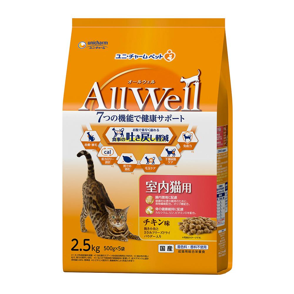 【CAINZ定期便】AllWell 食事の吐き戻しを軽減 室内猫用 チキン味 2.5kg