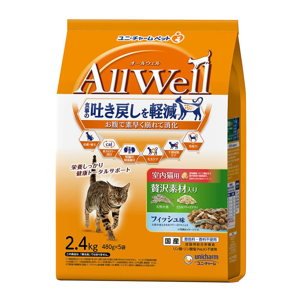 【CAINZ定期便】AllWell 食事の吐き戻し軽減 室内猫用 贅沢素材入り フィッシュ味 2.4kg
