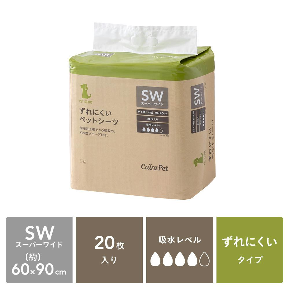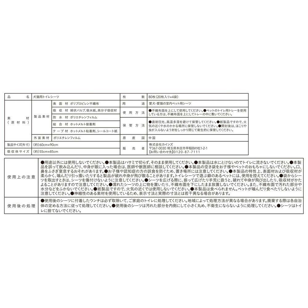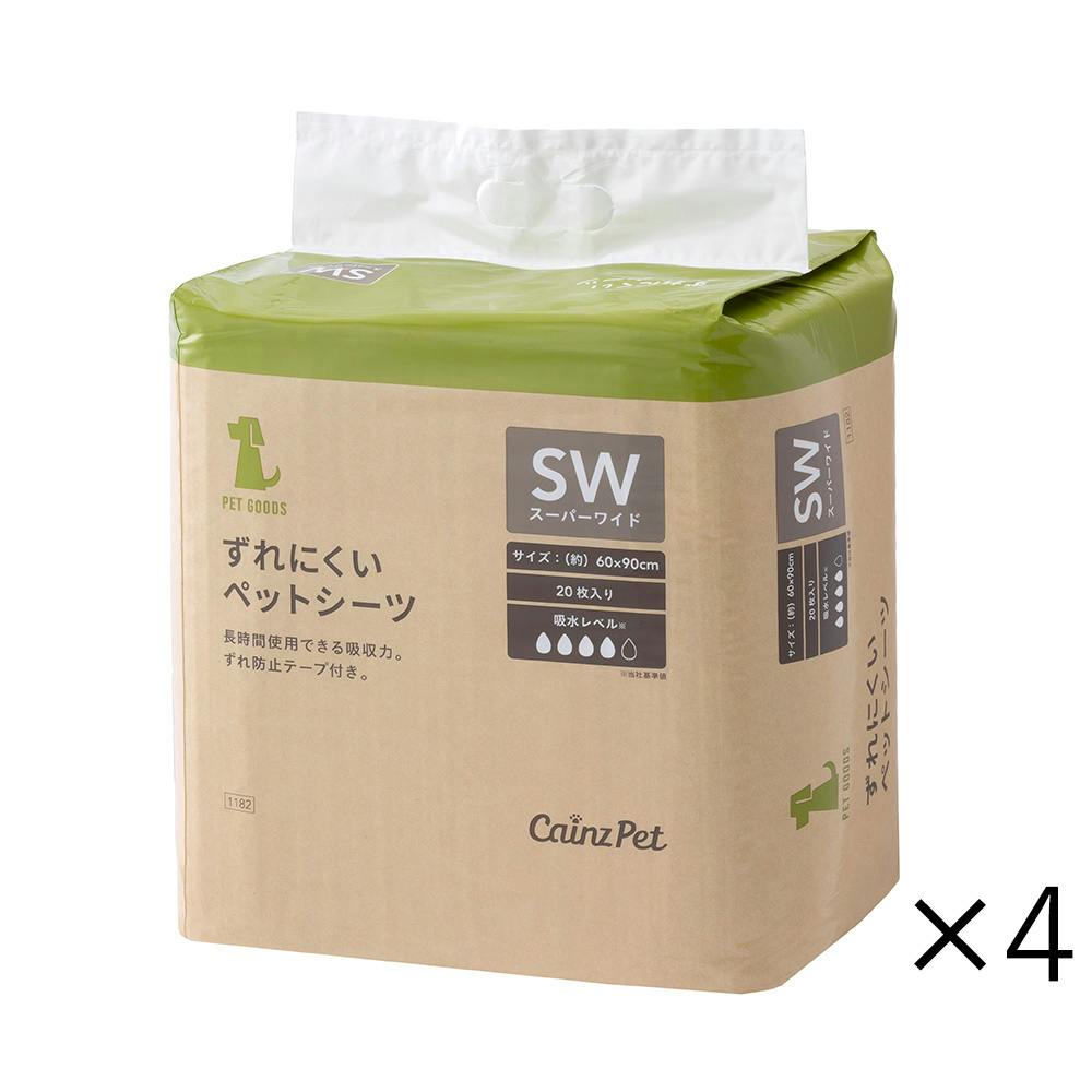 【CAINZ定期便】カインズ ずれにくいペットシーツ スーパーワイド 20枚×4個入 犬用 大型犬約1回分おしっこ吸収 ずれ防止テープ付き