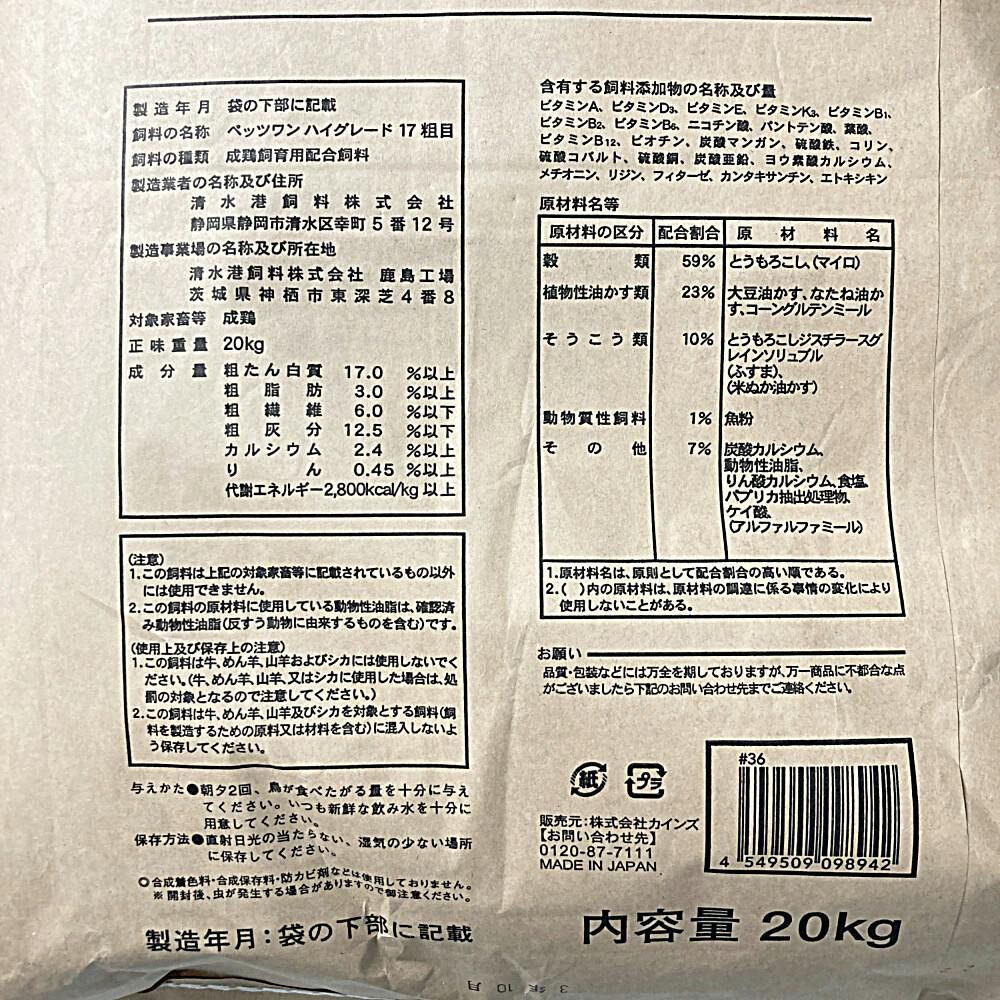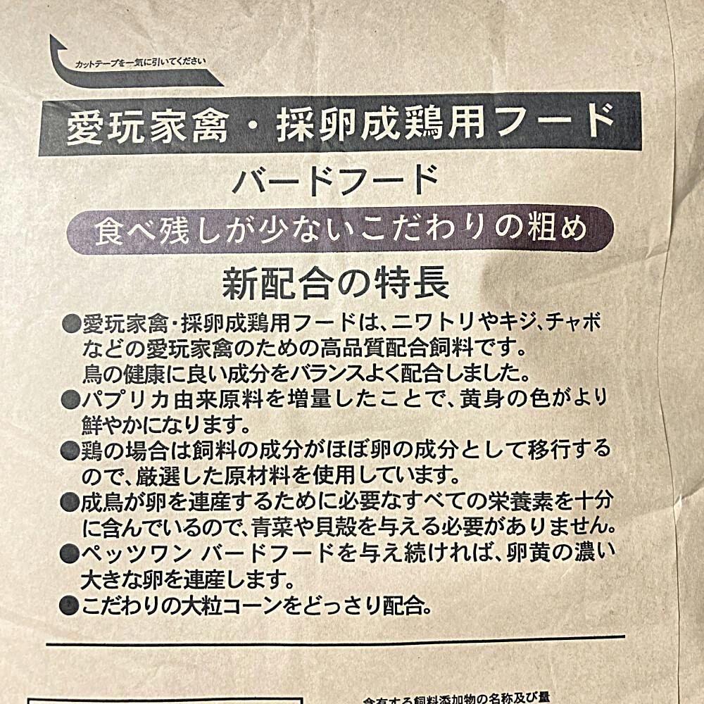 ●愛玩家禽・採卵成鶏用フードは、ニワトリやキジ、チャボなどの愛玩家禽のための高品質配合飼料です