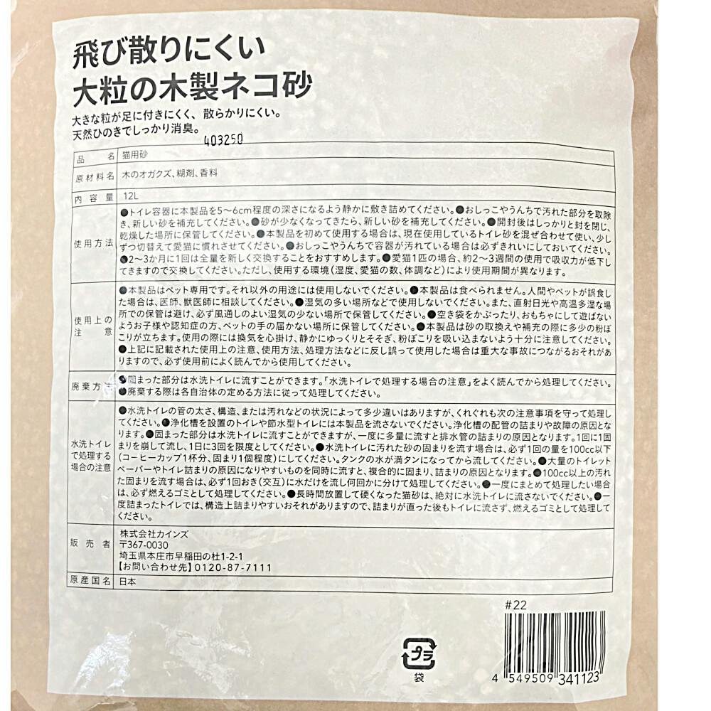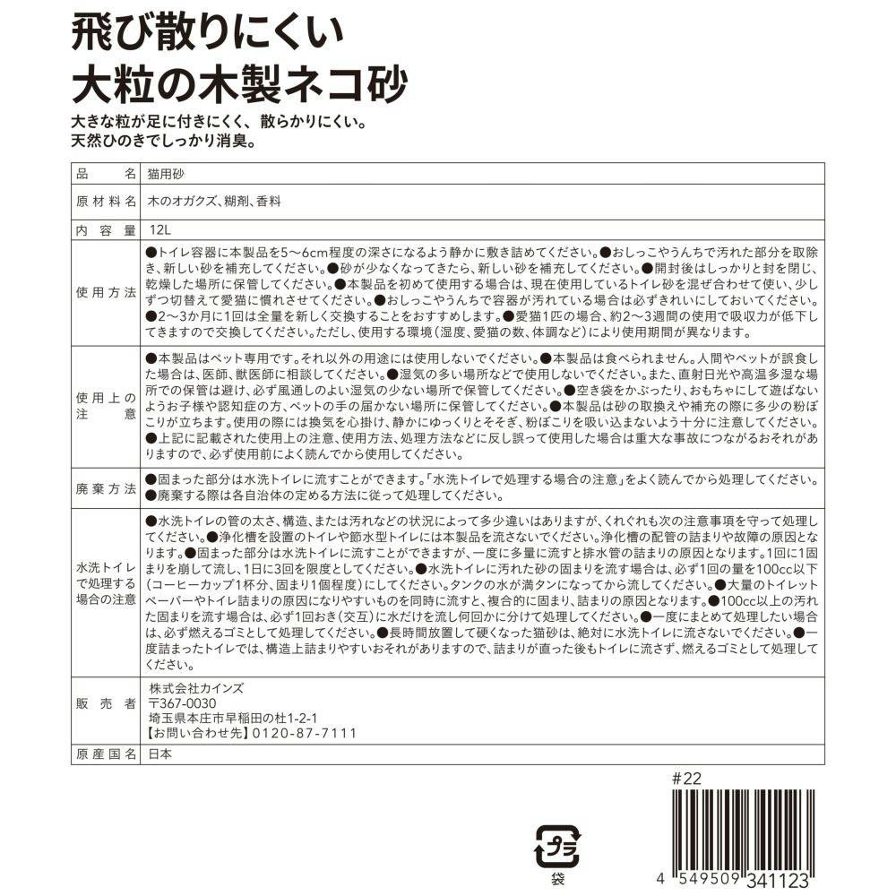 ●大きな粒が足に付きにくく、散らかりにくい。●天然ひのきでしっかり消臭。●流せる※注意点を確認してください。●燃やせる。