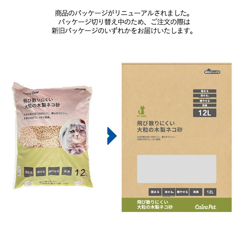 【CAINZ定期便】猫砂 Pet’sOne 飛び散りにくい 大粒の木製ネコ砂 12L×4 消臭 脱臭 大容量 飛び散り防止 固まる
