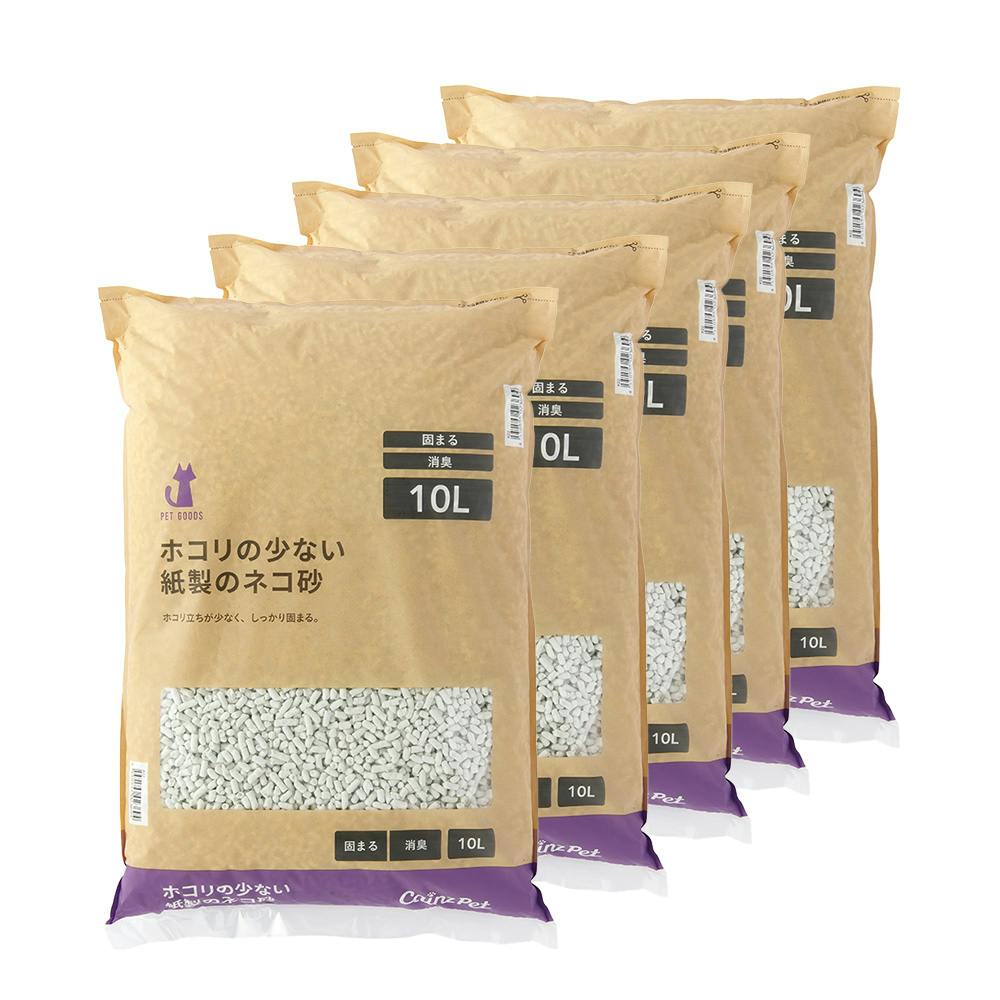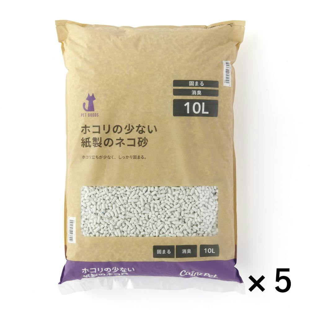 【CAINZ定期便】猫砂 Pet’sOne ホコリの少ない紙製のネコ砂 10L×5個入 消臭 飛び散り防止 固まる 燃やせる