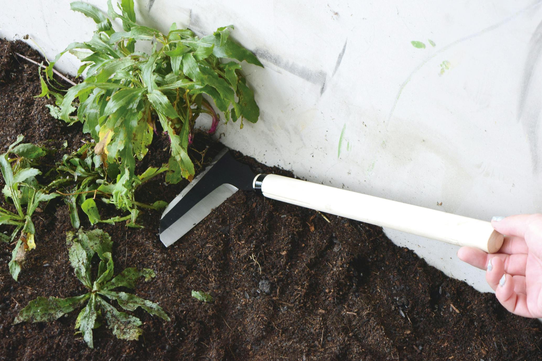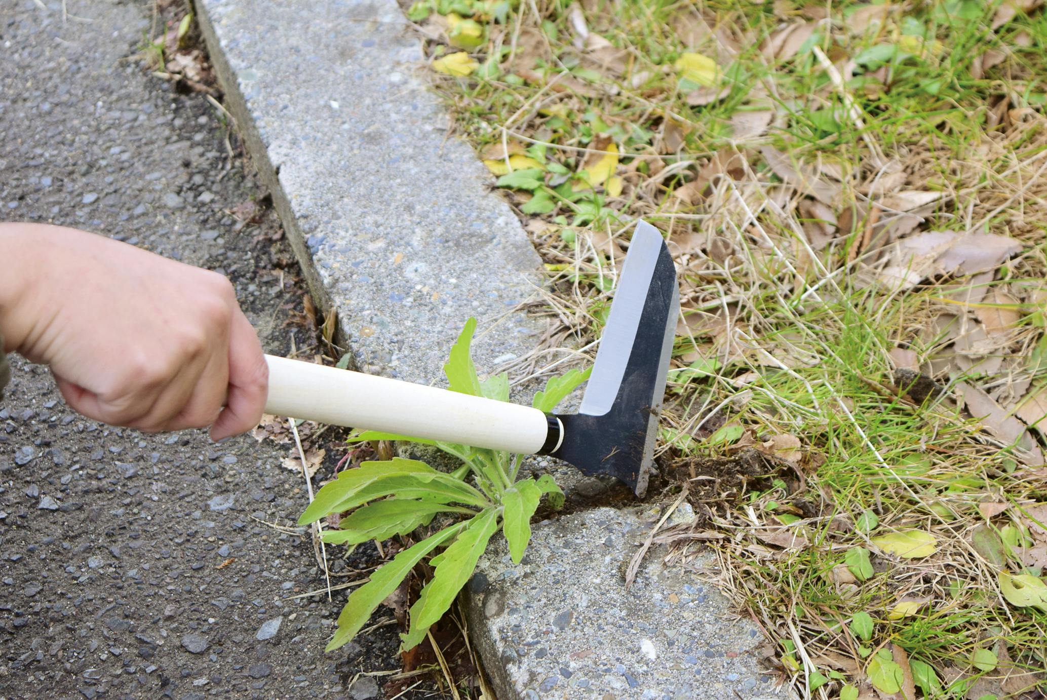 ●引き刈りはもちろん、押し刈り刃で壁際の除草に/コーナー刃でコンクリートのすき間も除草できる!