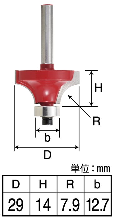 ●刃部サイズ:幅29×高さ14×R7.9(mm) ●ベアリング幅:12.7(mm) ●丸軸6mm