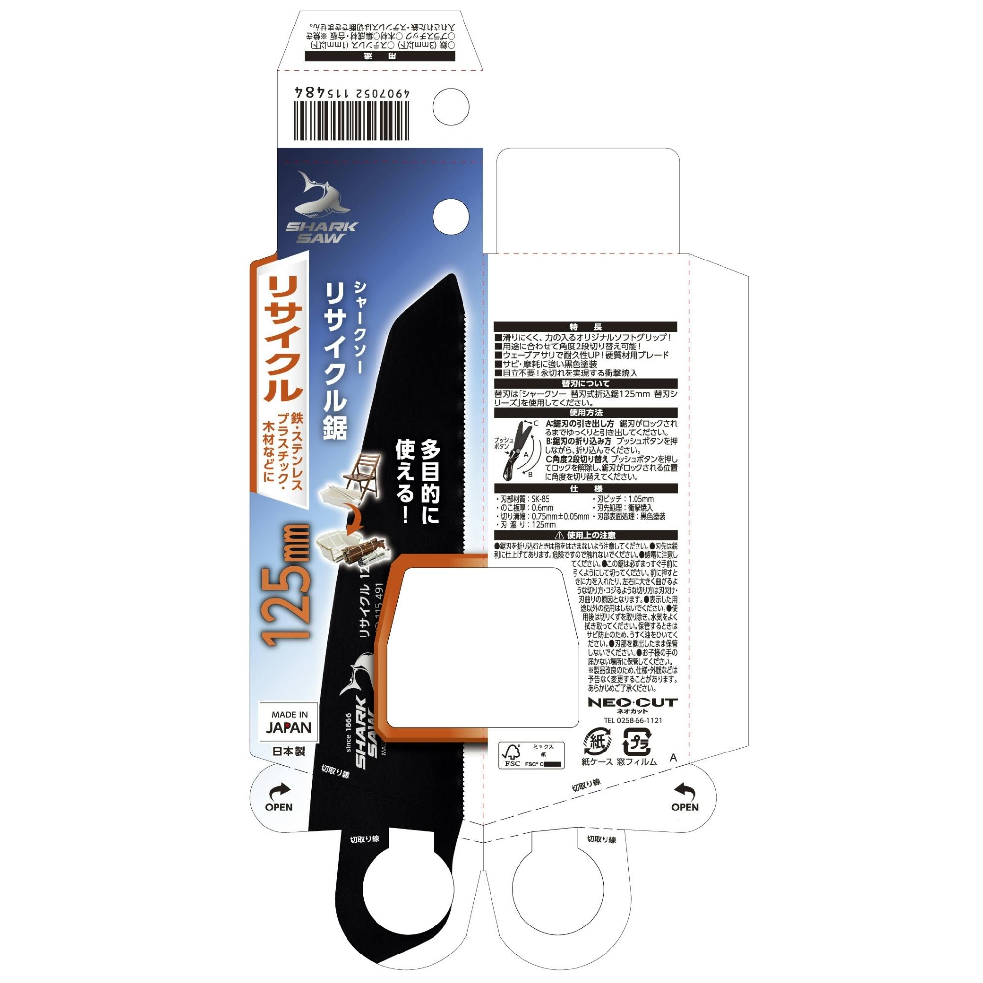 シャークソー リサイクル鋸125mm 日本製 折込鋸 解体作業 角度2段切替 ソフトグリップ 収納 折りたたみ 1008993【別送品】