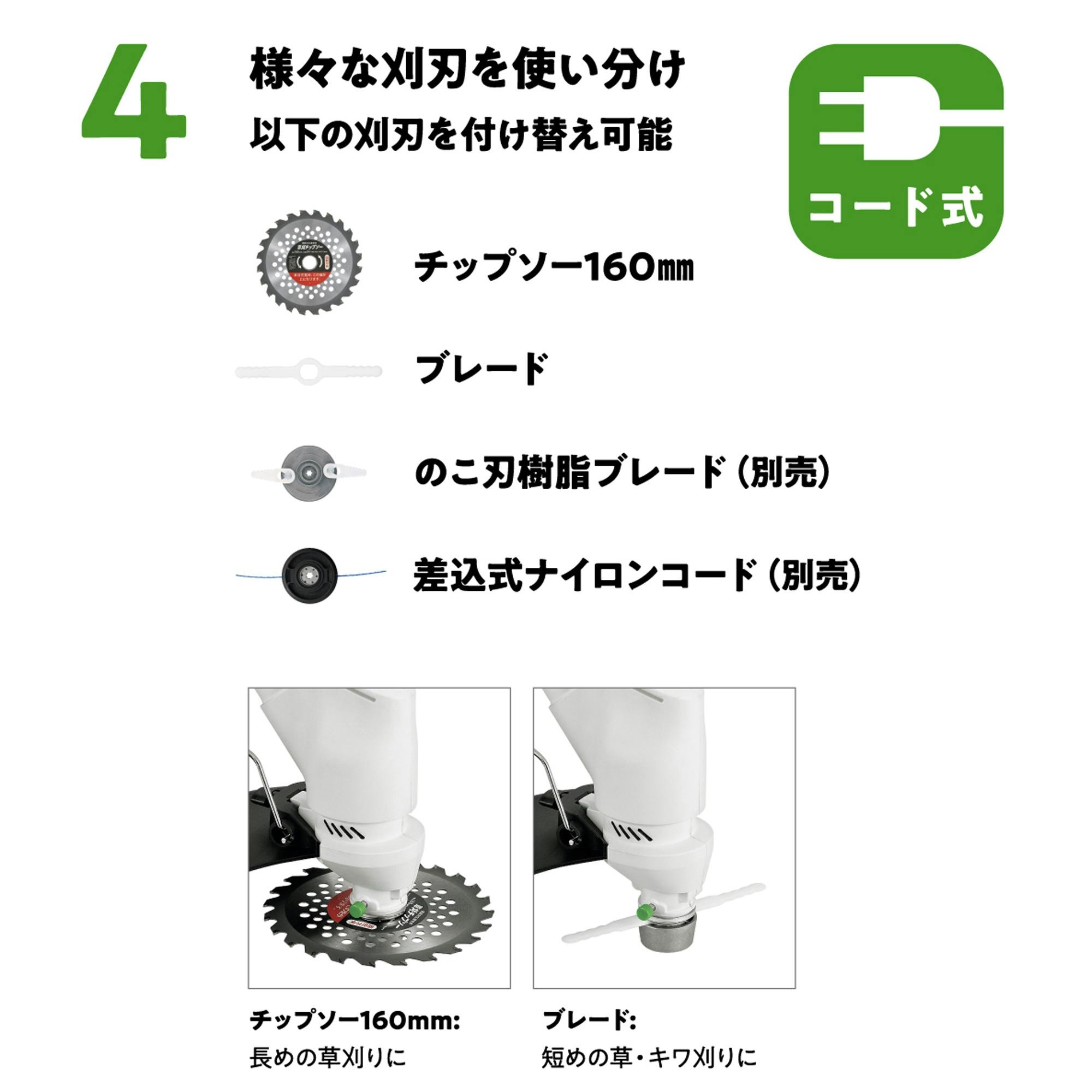 ●バッテリー切れの心配がないAC電源仕様●使用場所に応じて変更可能な2WAY仕様(チップソーとナイロンブレードがセット)