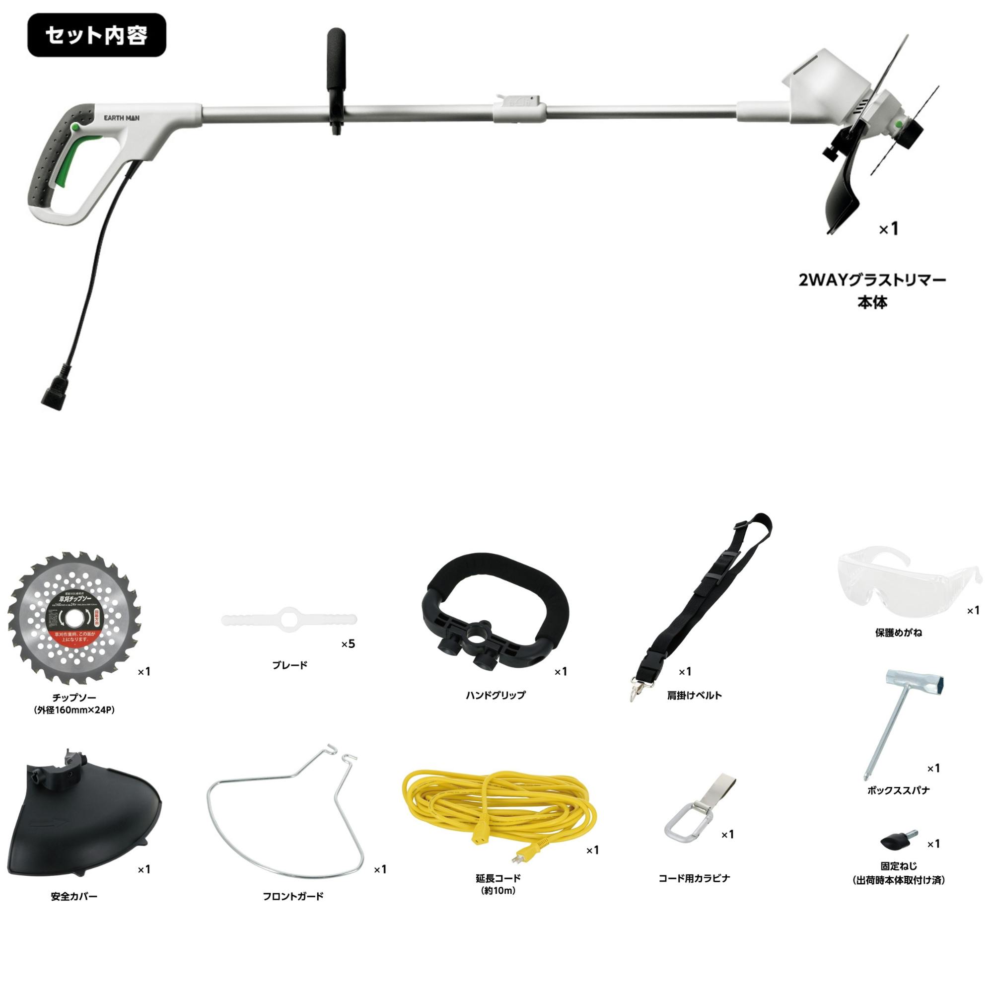 EARTH MAN コード式2WAYグラストリマー GGT-300WA AC 草刈り機 刈り込み キワ刈り チップソー ブレード 伸縮ポール 手が疲れにくい 10m延長コード 2056652【別送品】