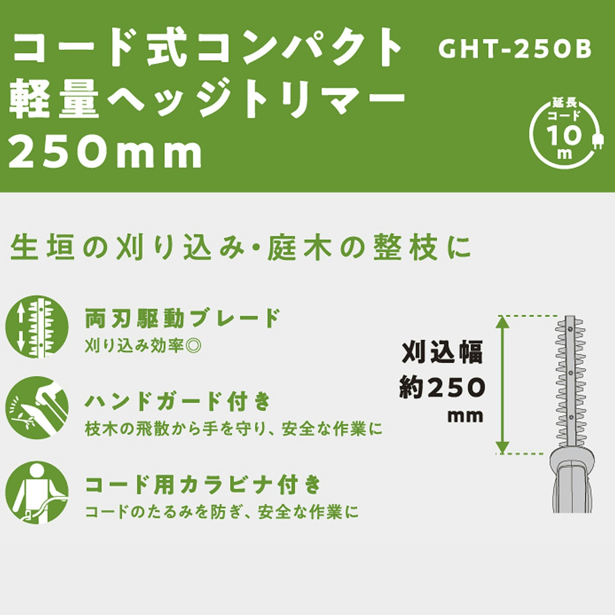 EARTH MAN コード式コンパクト軽量ヘッジトリマー250mm GHT-250B コード用カラビナ付 刈り込み 庭木 整枝 両刃駆動ブレード 2056692【別送品】