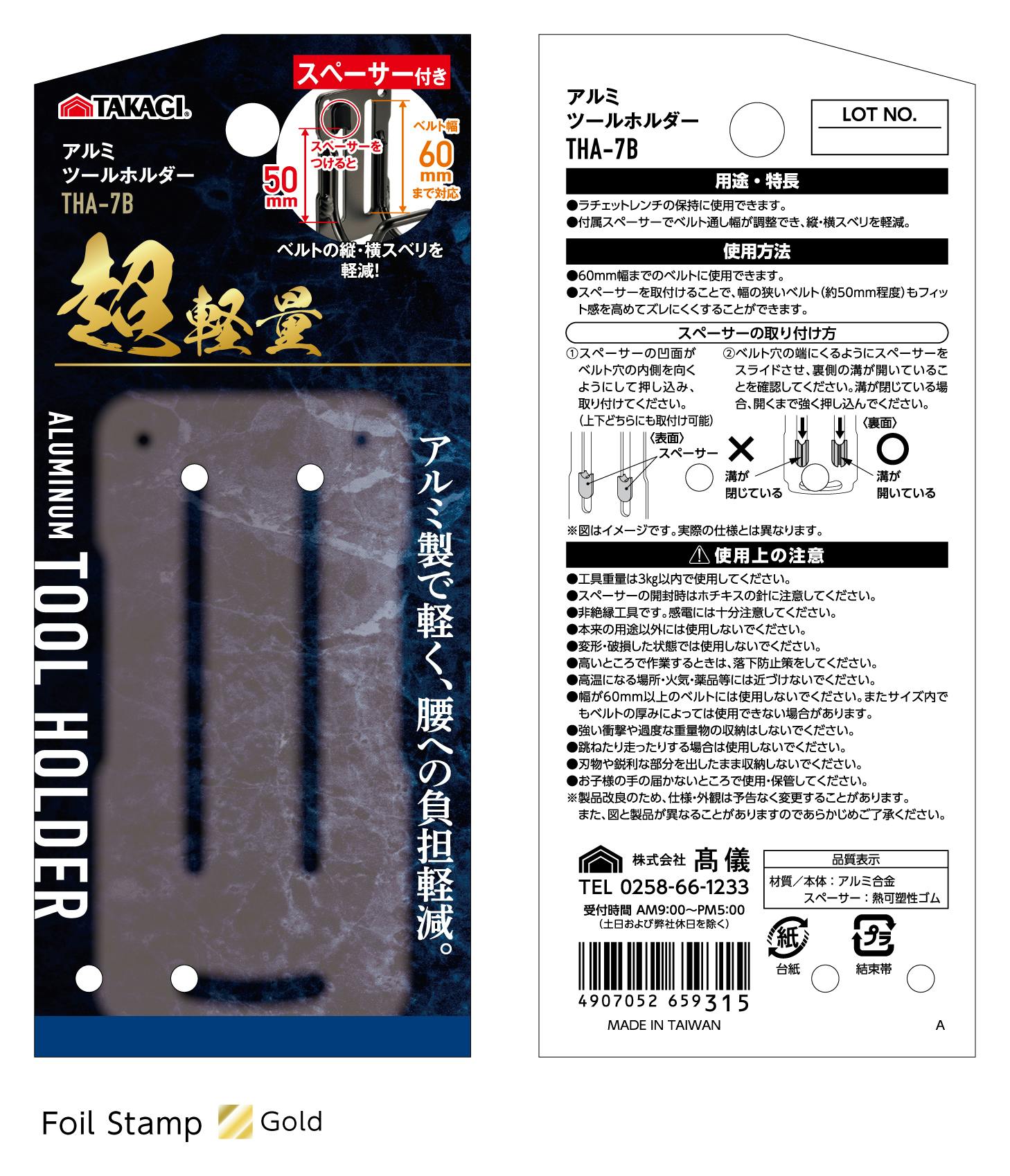 TAKAGI アルミツールホルダー THA-7Bラチェット差し スペーサー2個付 ベルト通し幅調整可能 ベルト幅60mmまで対応 工具差 工具掛 収納 軽量 1020476【別送品】