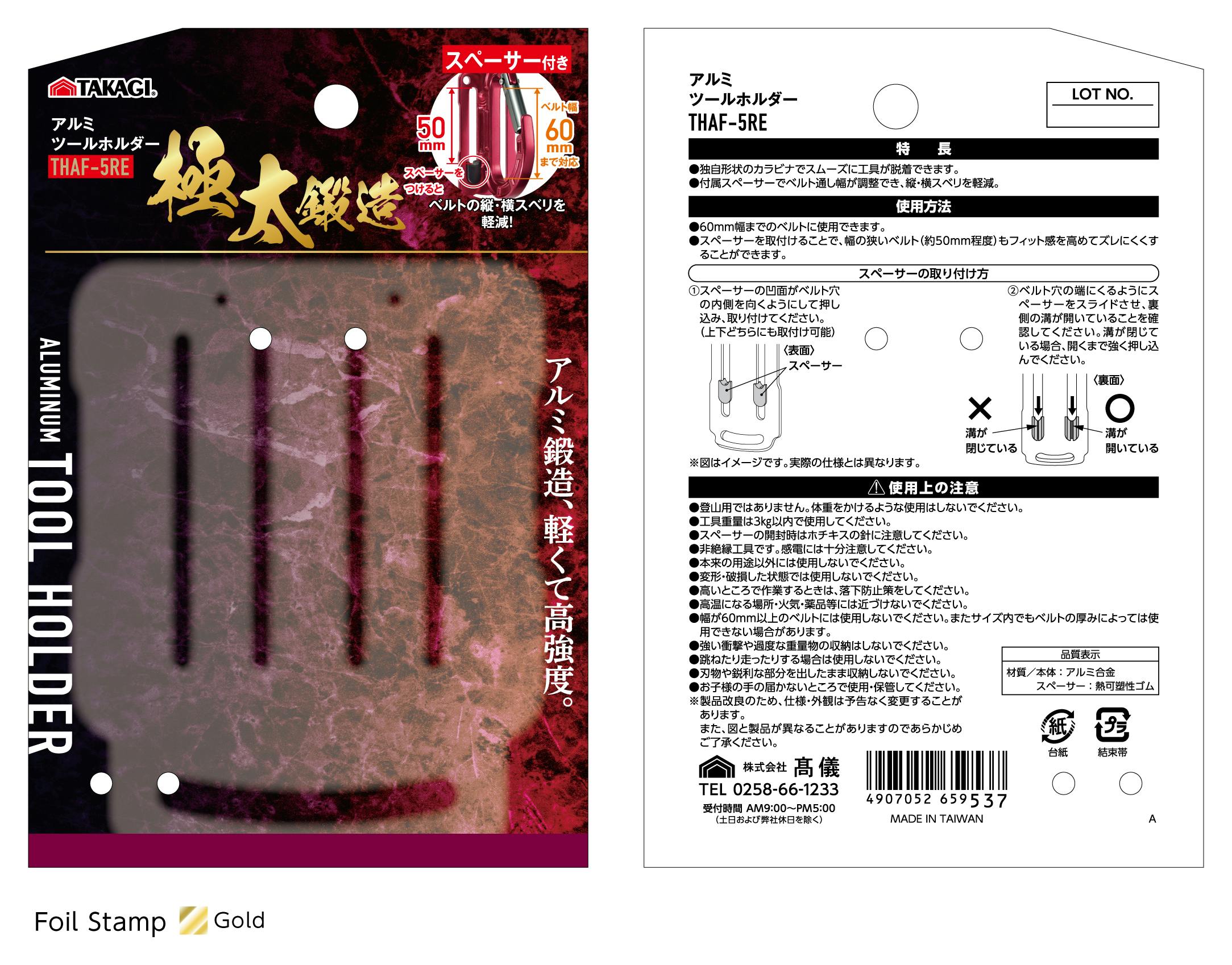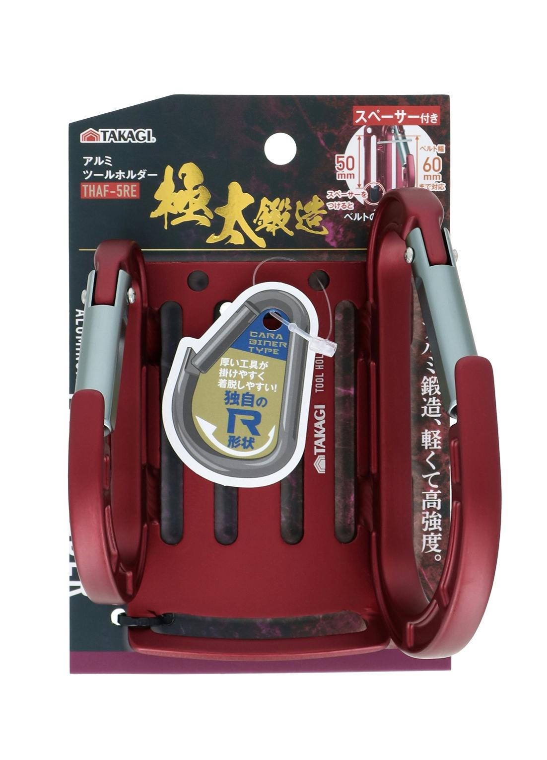 TAKAGI アルミツールホルダー THAF-5RE 赤 スペーサー2個付 ベルト通し幅調整可能 ベルト幅60mmまで対応 工具差 工具掛 軽量 高強度 1020491【別送品】