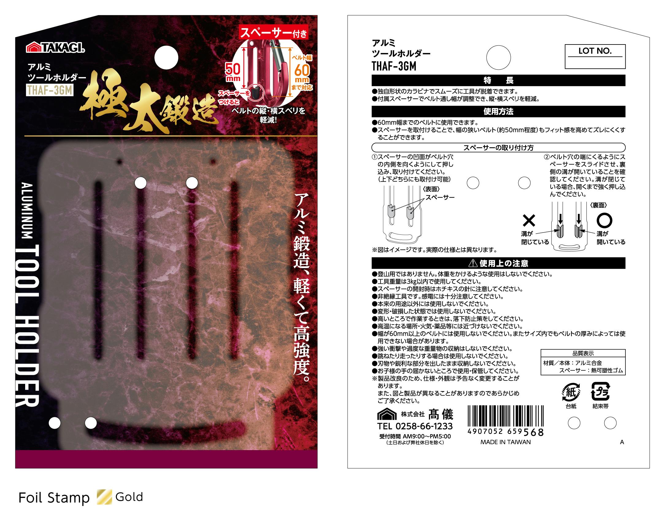 TAKAGI アルミツールホルダー THAF-3GM ガンメタ スペーサー2個付 ベルト通し幅調整可能 ベルト幅60mmまで対応 工具差 工具掛 軽量 高強度 1020494【別送品】